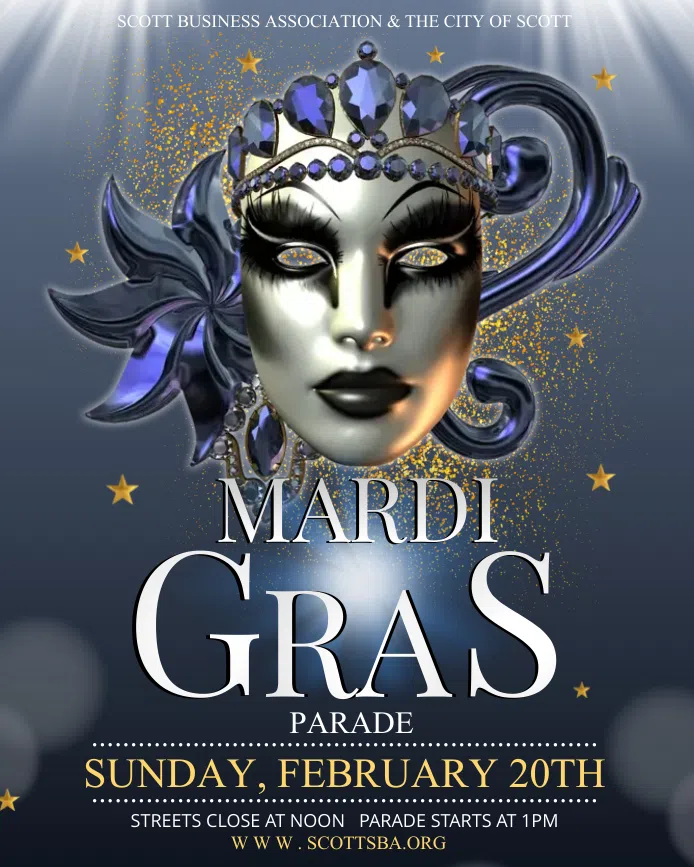 The 25th Annual Scott Mardi Gras Parade will be held Sunday, February 20, 2022.