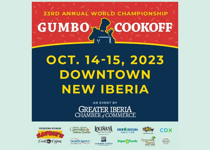 The World Championship Gumbo CookOff is a free two-day event that takes place every second weekend in October, in New Iberia, Louisiana. THIS YEAR’S EVENT WILL TAKE PLACE OCTOBER 14 & 15 IN ...